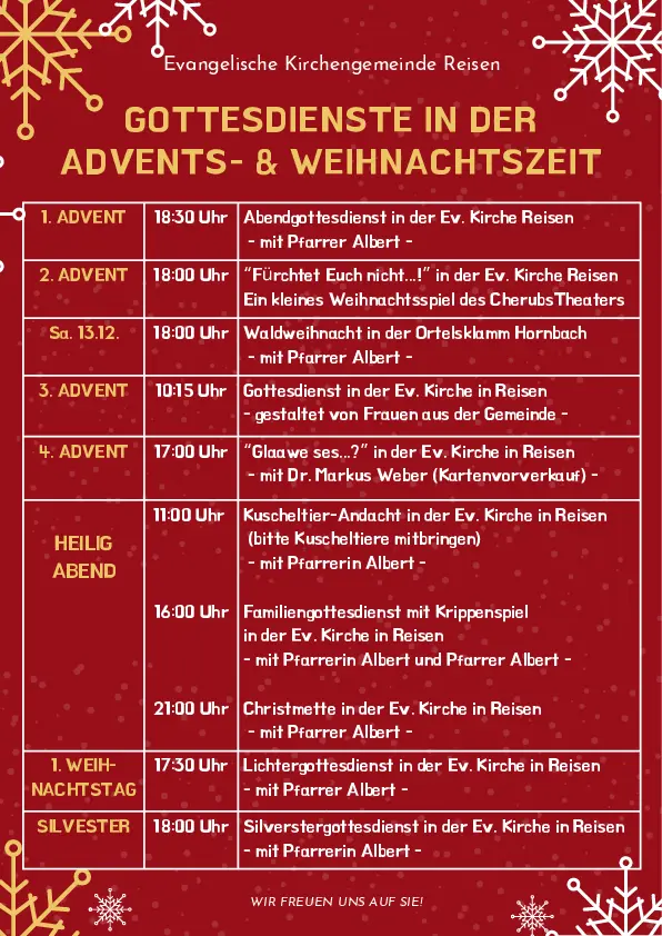 Die evangelischen Kirchengemeinden Birkenau und Reisen laden an Weihnachten zu ihren vielfältigen Gottesdiensten in ihre evangelischen Kirchen…